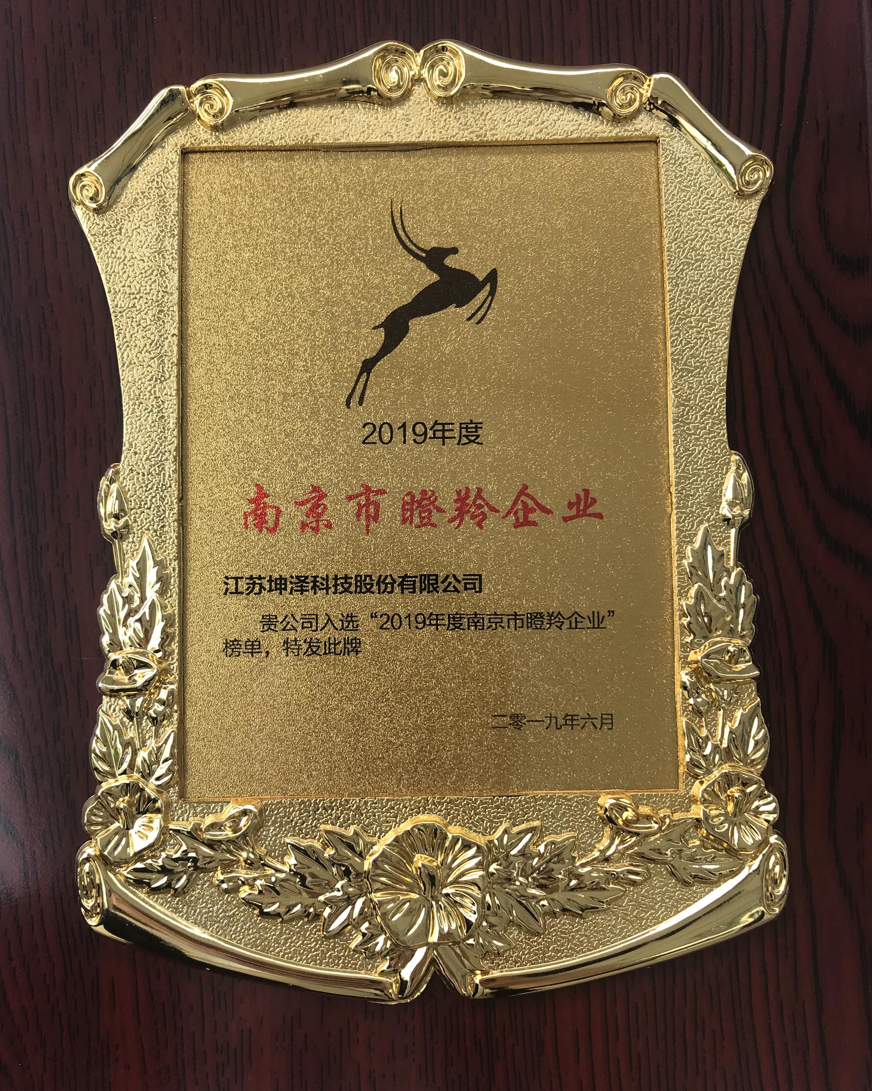 喜讯!江苏坤泽荣获“2019年度南京市瞪羚企业”殊荣