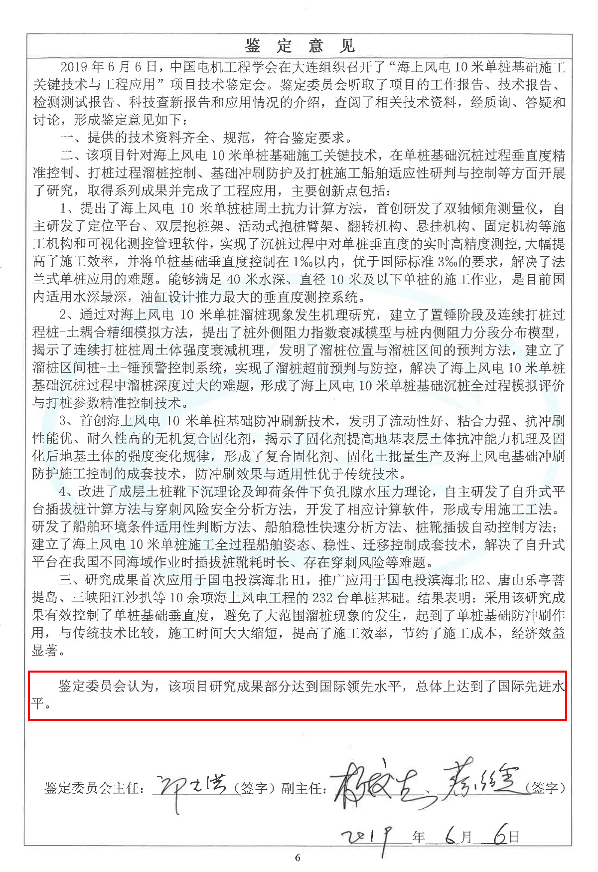 坤泽与多家单位联合申报的海上风电10米单桩基础施工关键技术与工程应用研究成果被中国电机工程学会鉴定委员会认为:”部分达到国际领先水平,总体上达到了国际先进水平。”